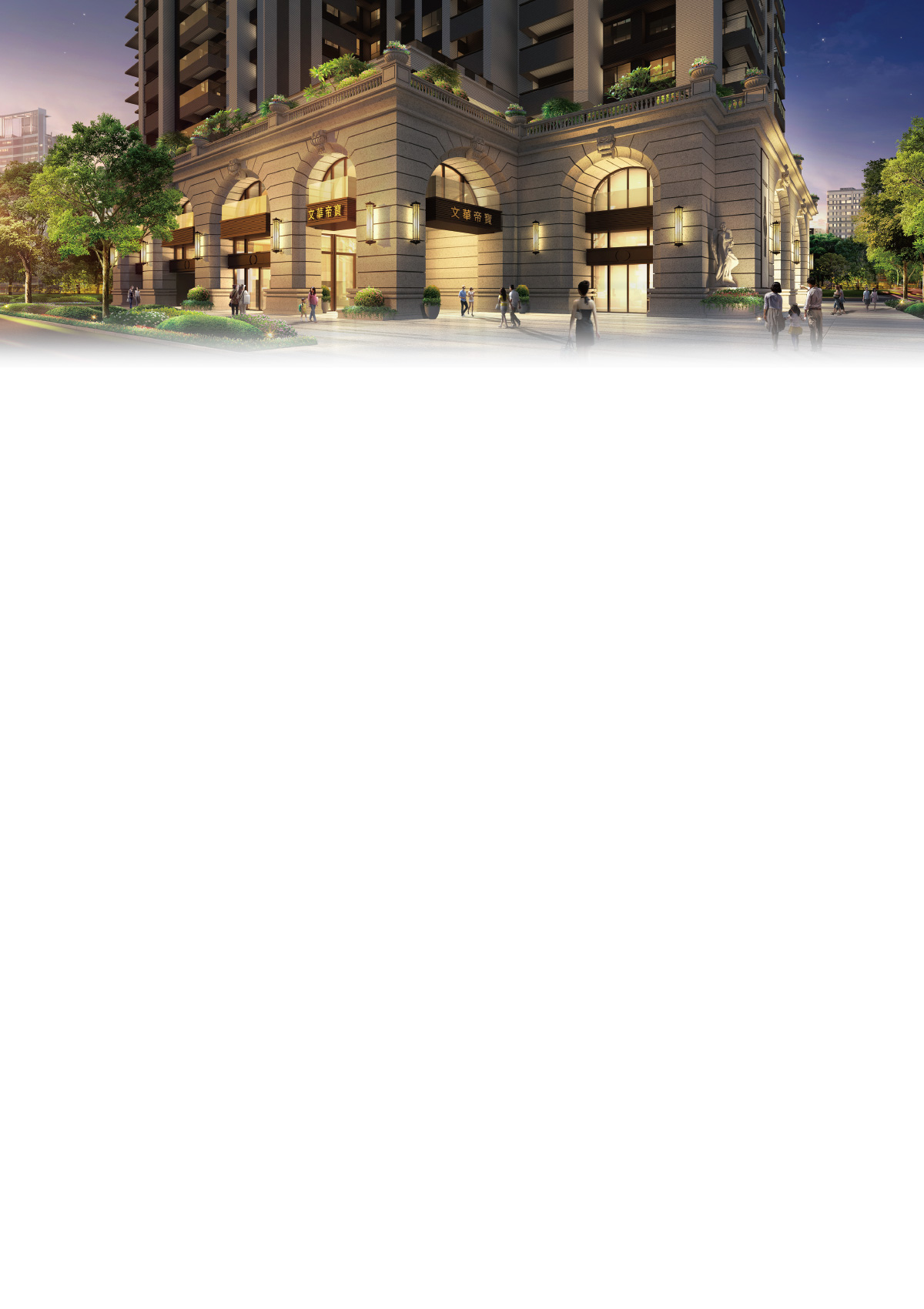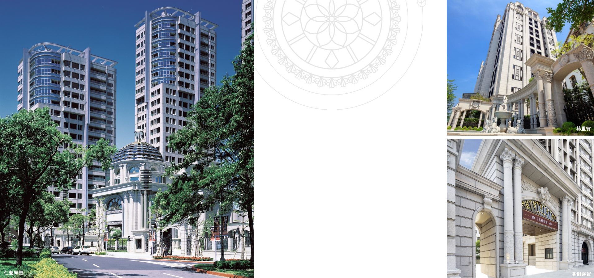 古典巴洛克崗石基座,媲美台灣第一豪宅-仁愛帝寶;一刀一鑿,弧線基座、拔高10米柱廊,展現連拱美學;法國邊石材、迎賓雕像,鄰里欽羨